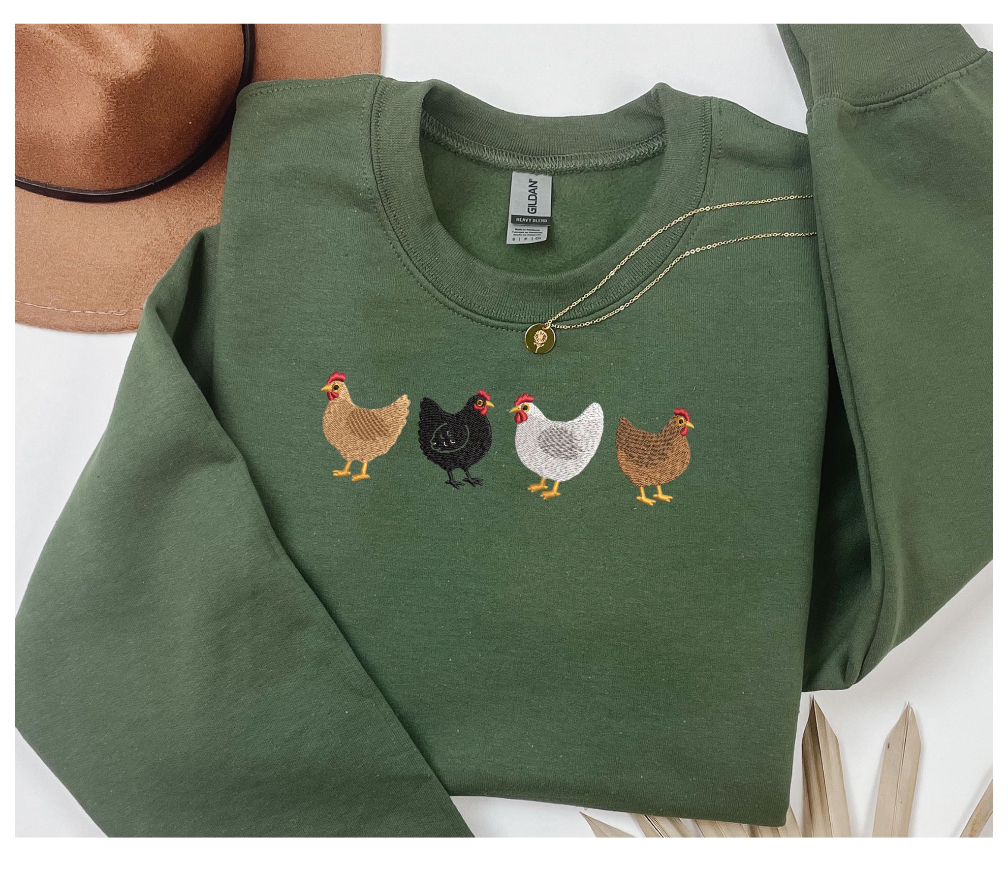 Embroidered chicken Sweatshirt. Also available in our super soft and cosy hoodies.