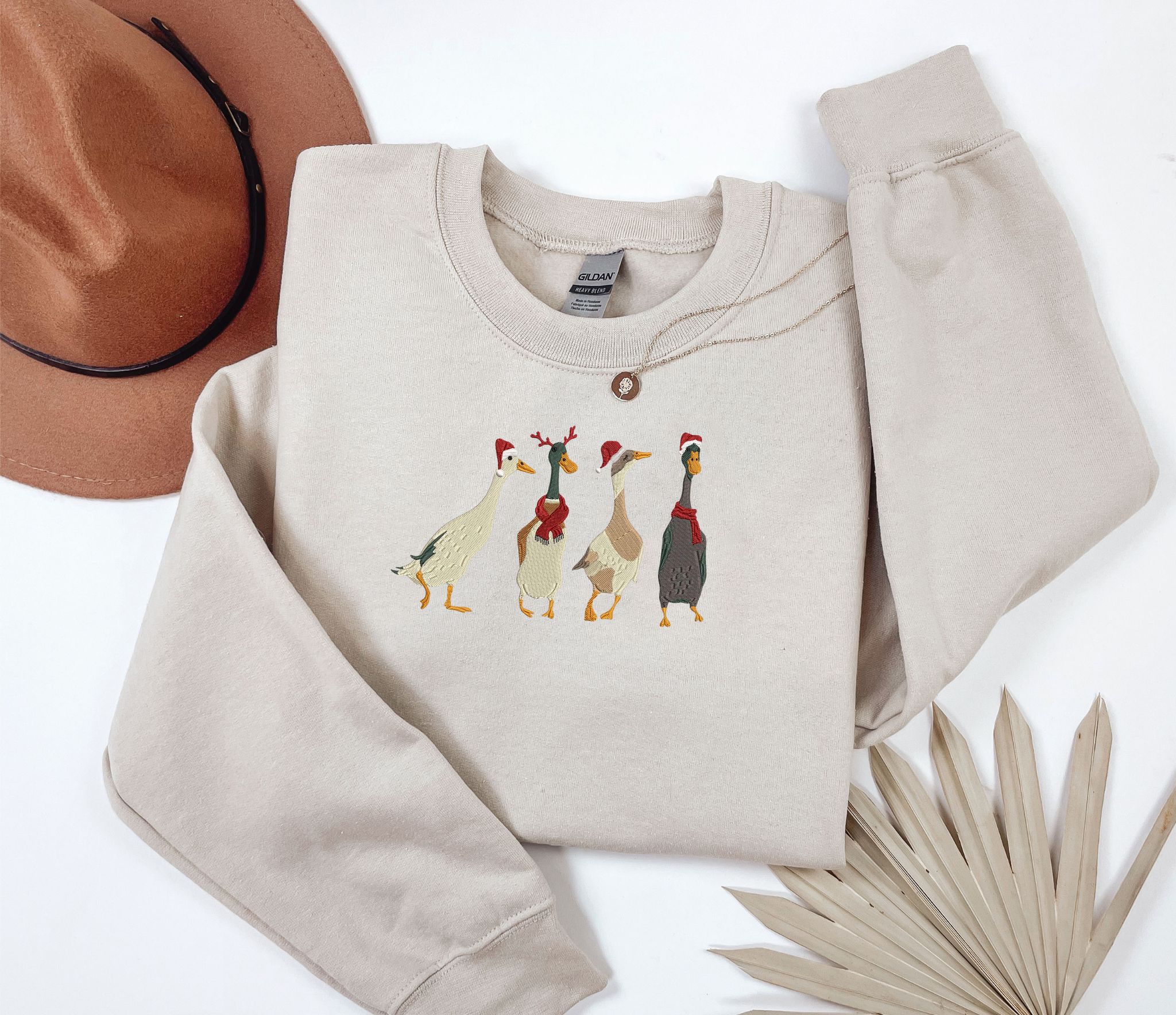 Embroidered Christmas Ducks Sweatshirt Or Hoodie.