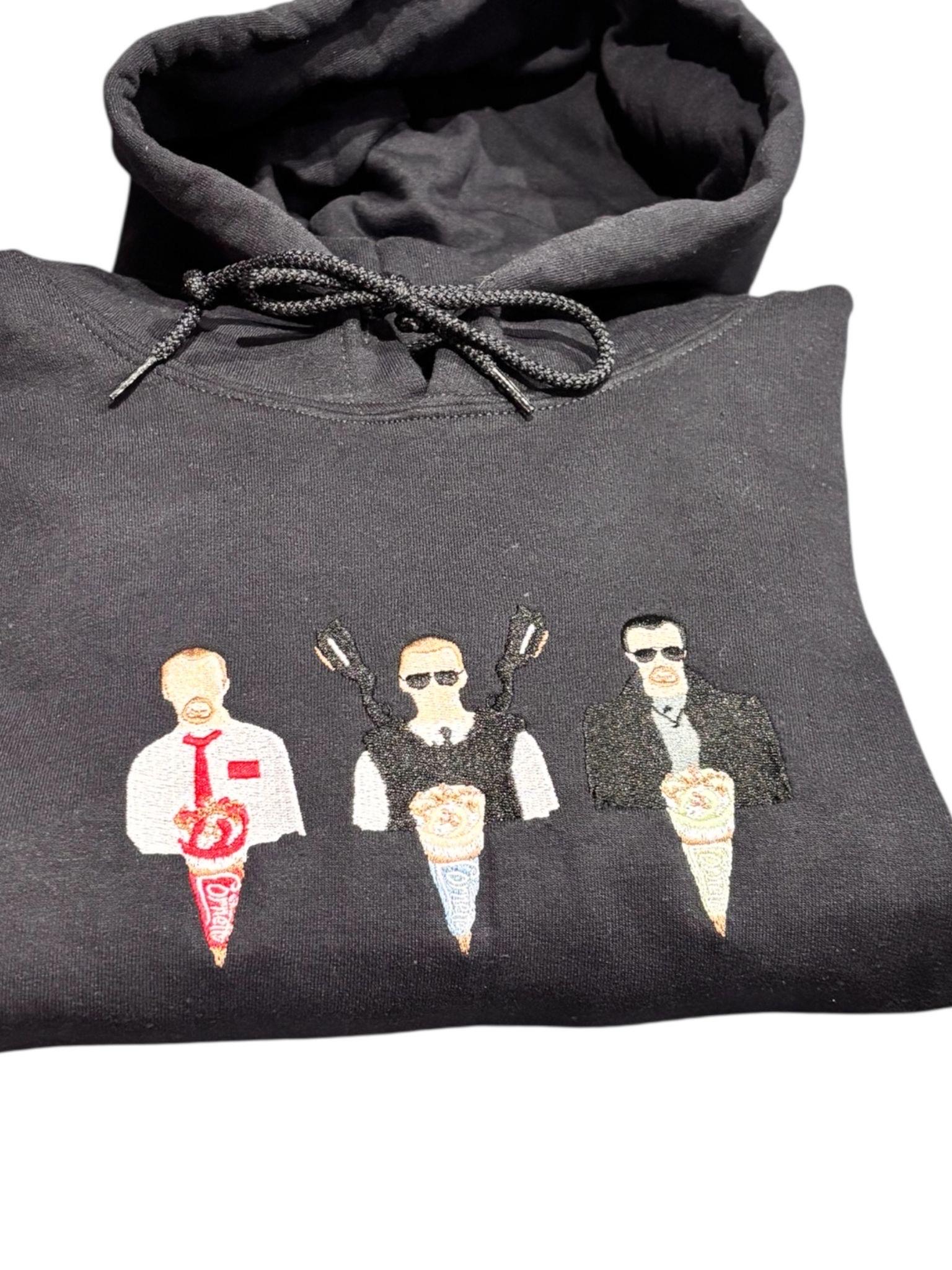 Embroidered The Cornetto Trilogy iconic movie sweatshirt.