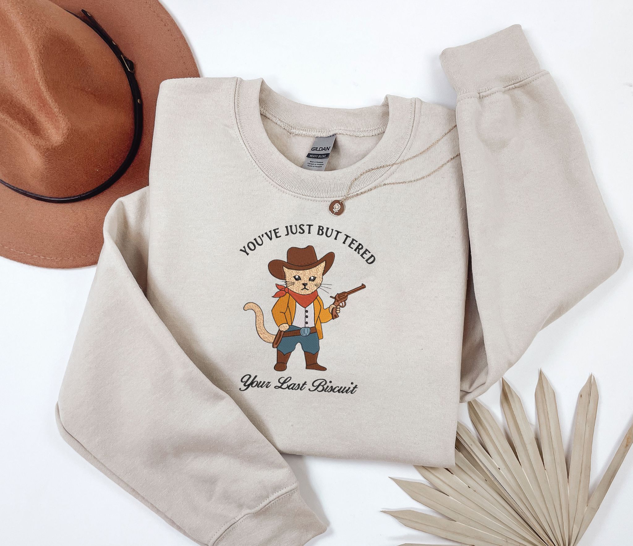 Embroidered cat in cowboy hat and boots you’ve just buttered your last biscuit, sweatshirt or hoodie.