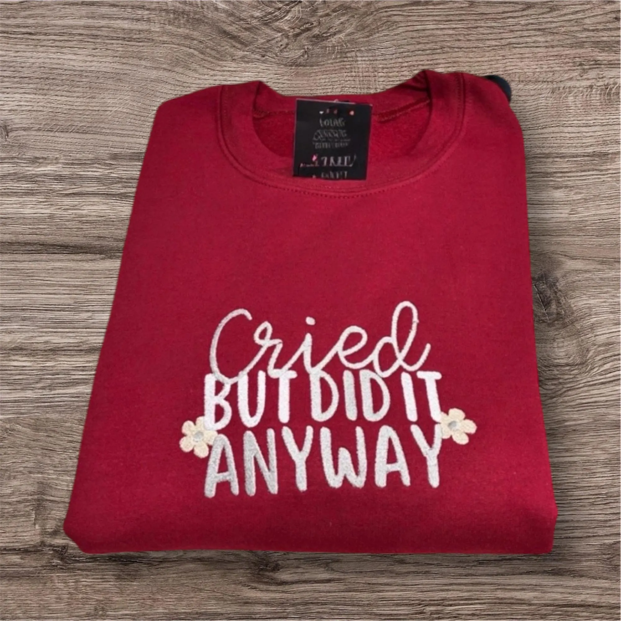 Embroidered cried but did it anyway sweatshirt, funny hoodie, mental health clothing, perfect gift for men and women, crew neck jumper.