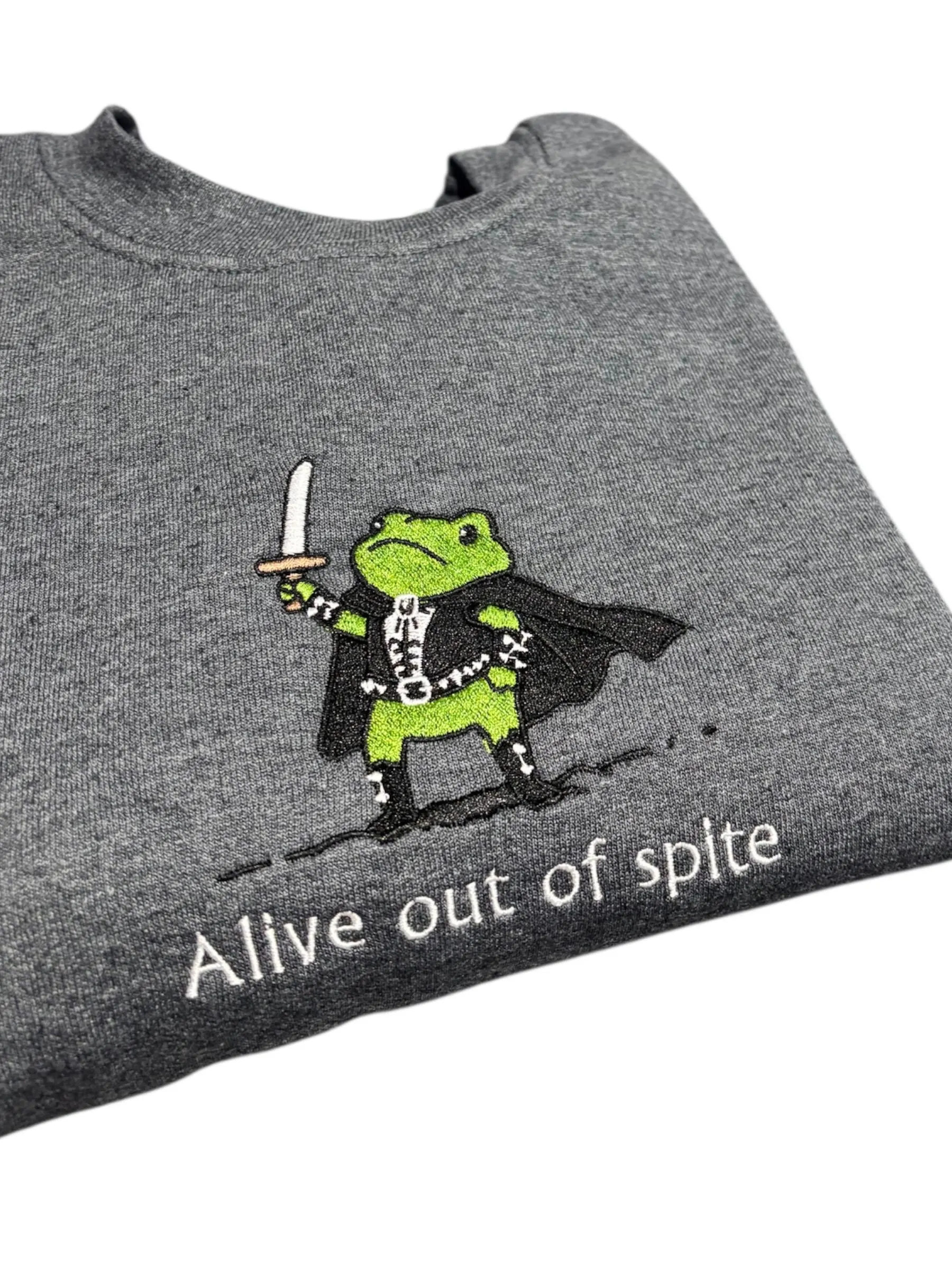 Embroidered gothic frog alive out of spite slogan sweatshirt