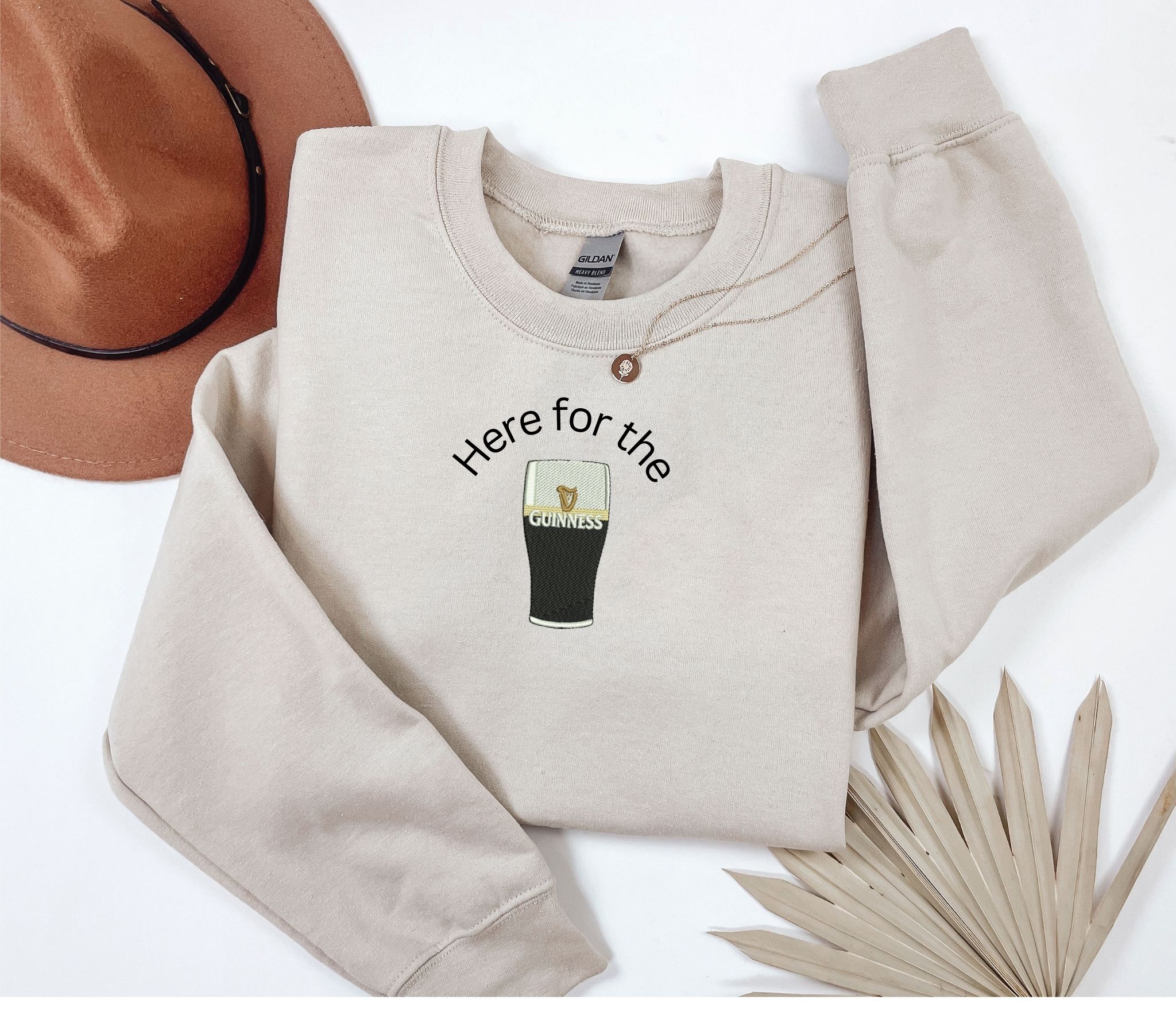 Embroidered Here for the Guinness sweatshirt.