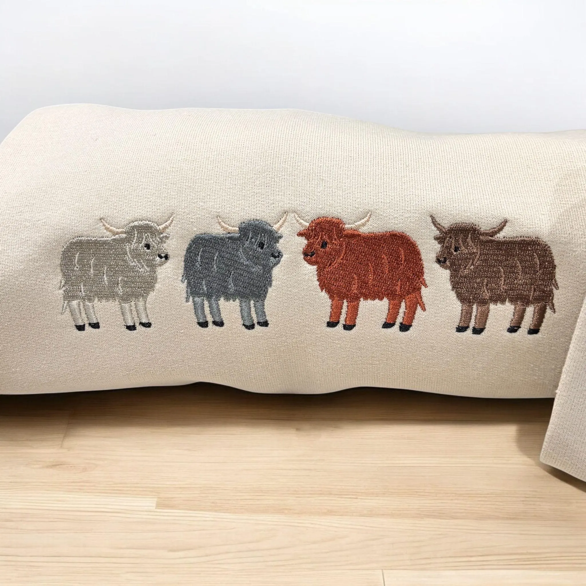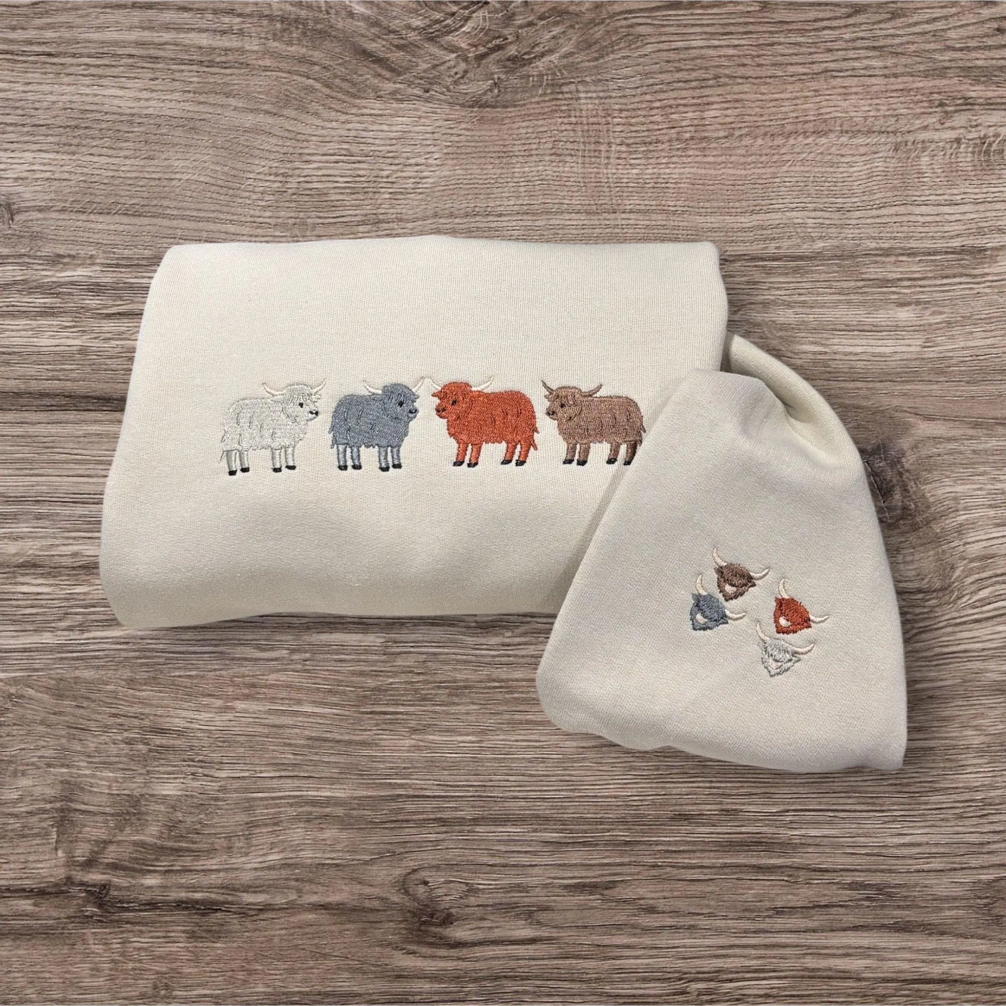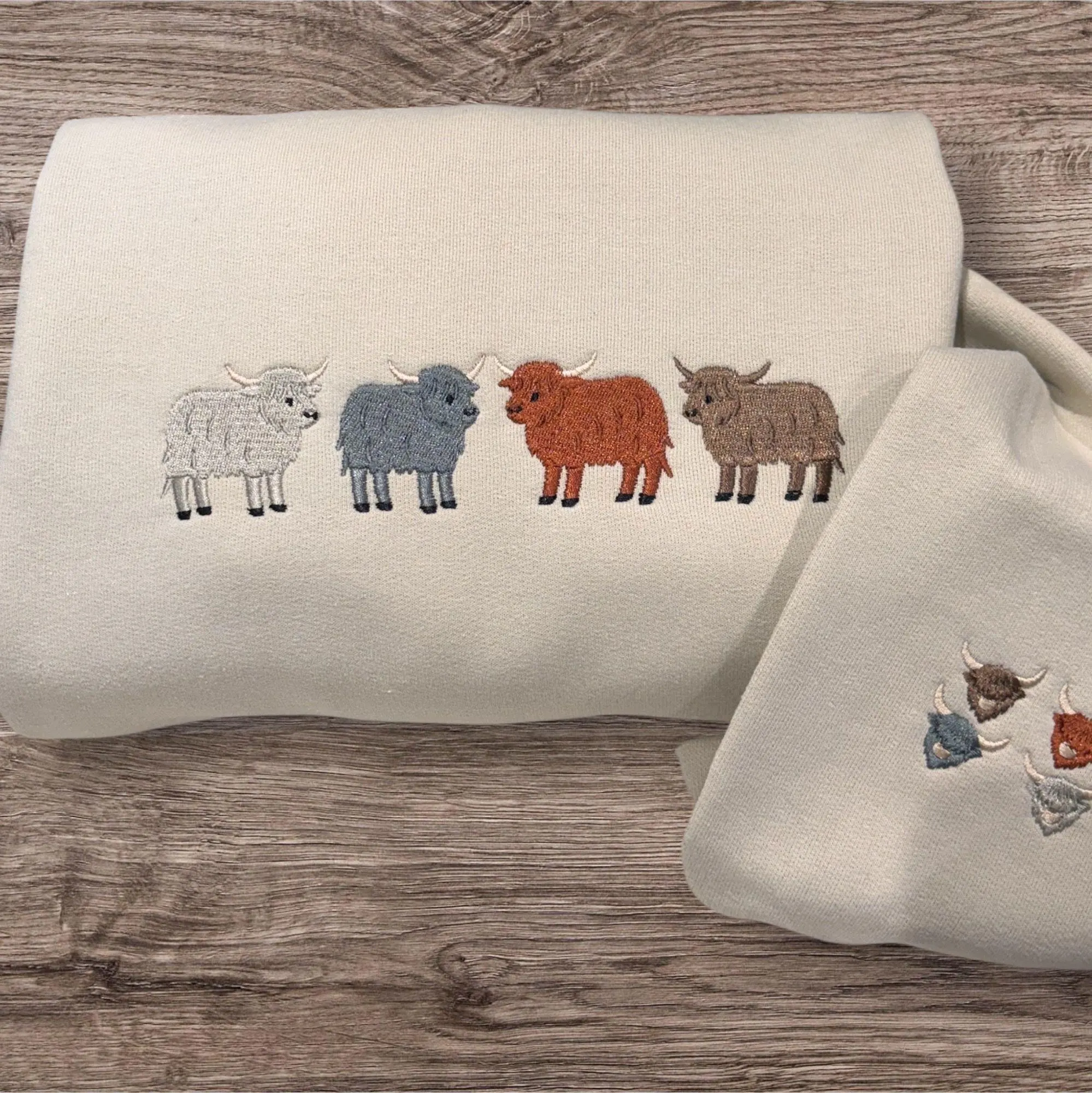 🐮 Embroidered highland cow Sweatshirt, Animal Lover hoodie, cute pet Shirt, Gift For Women, men, clothing, fashion, farm animals crew neck.