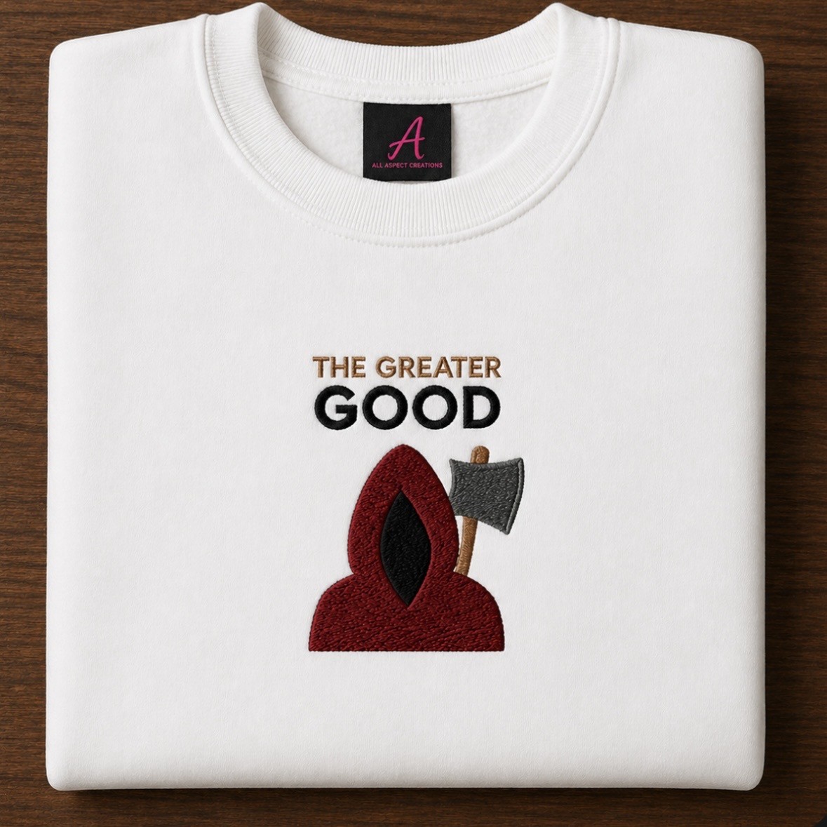 Embroidered Hot Fuzz The Greater Good iconic movie sweatshirt.