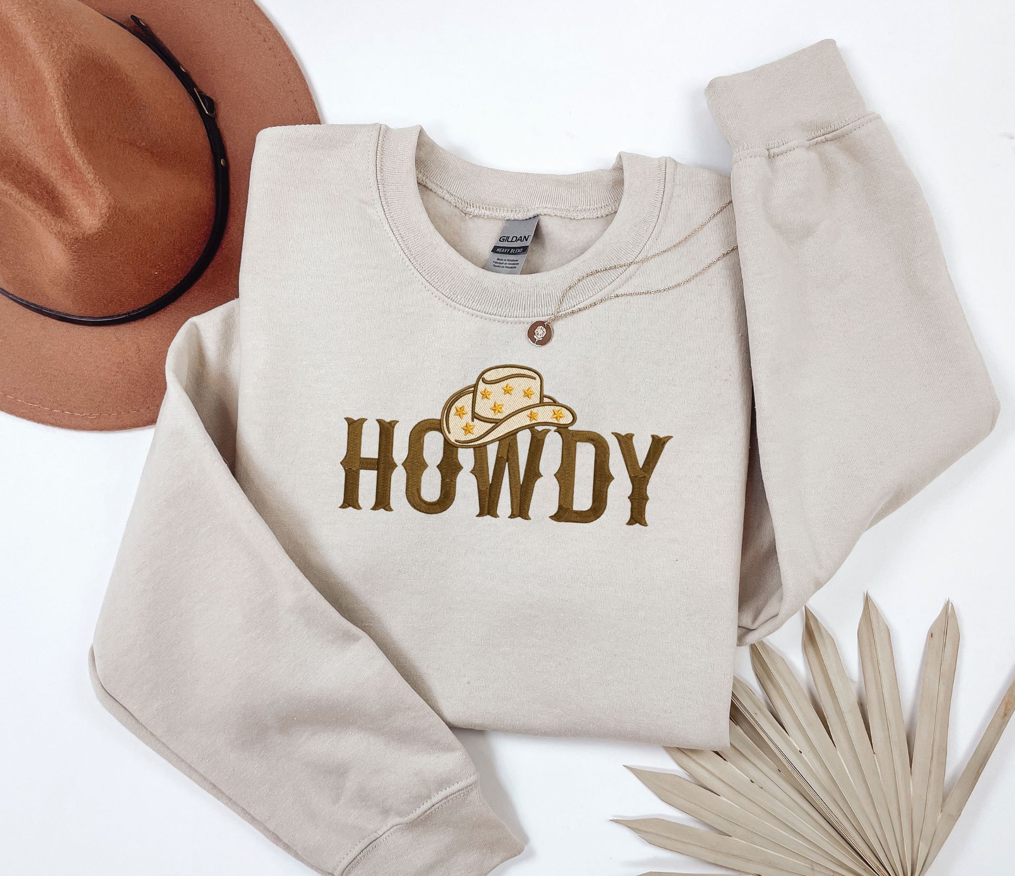 Embroidered HOWDY slogan with a star detail cowboy hat sweatshirt.