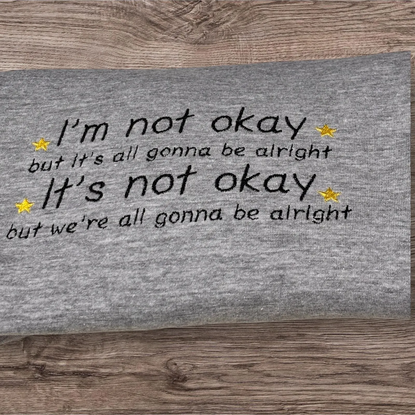 Embroidered I’m not okay but it’s all gonna be alright tshirt, jumper or hoodie.