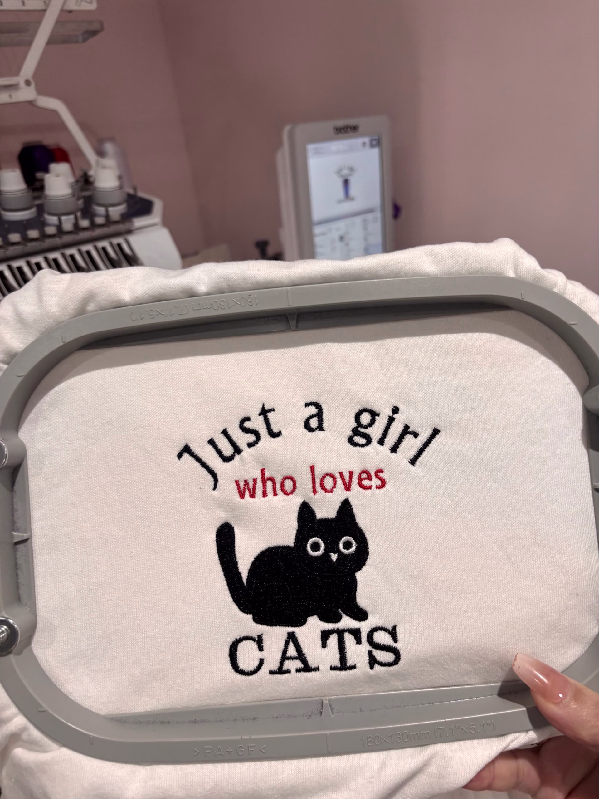 Embroidered just a girl who loves cats sweatshirt.