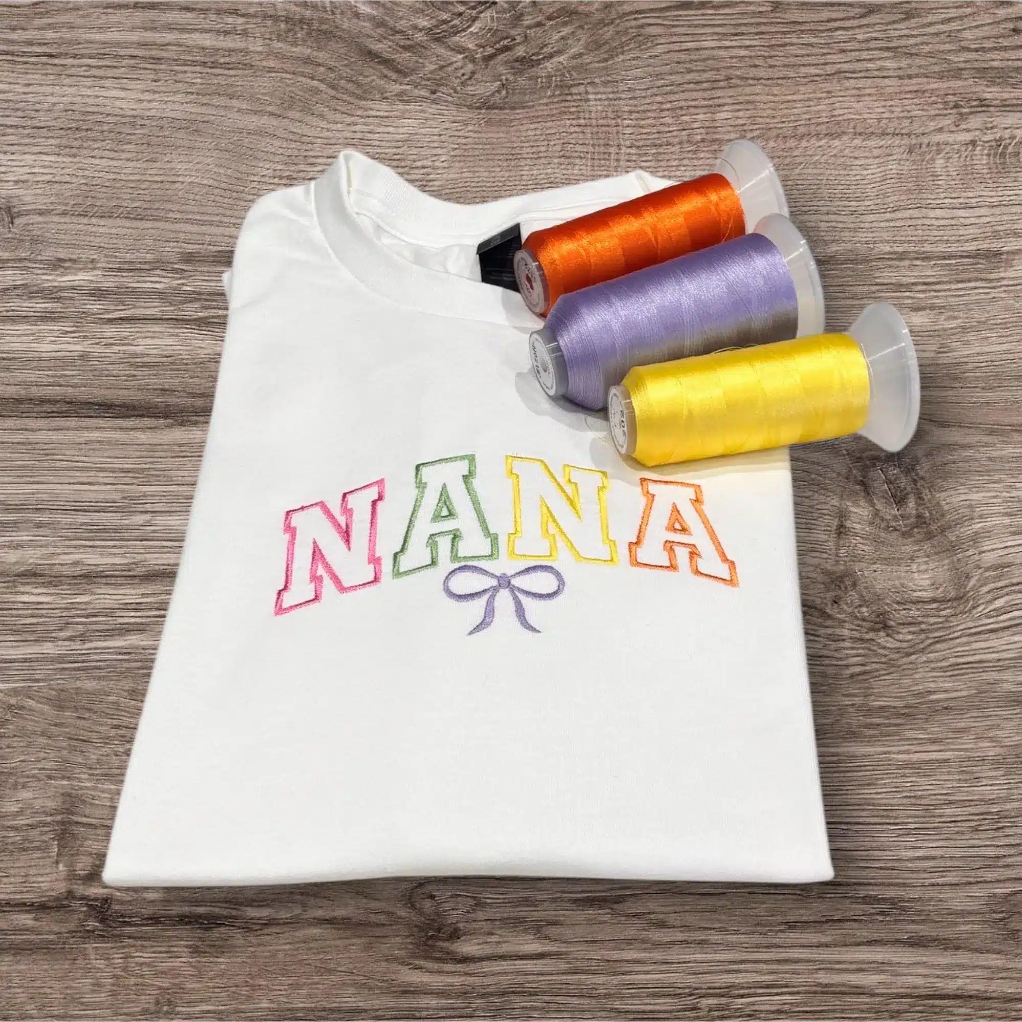 Nana with a bow embroidered T-shirt, sweatshirt or hoodie. Perfect gift from a grandchild.Nana fashion, nanny gifts, grandparent shirt.