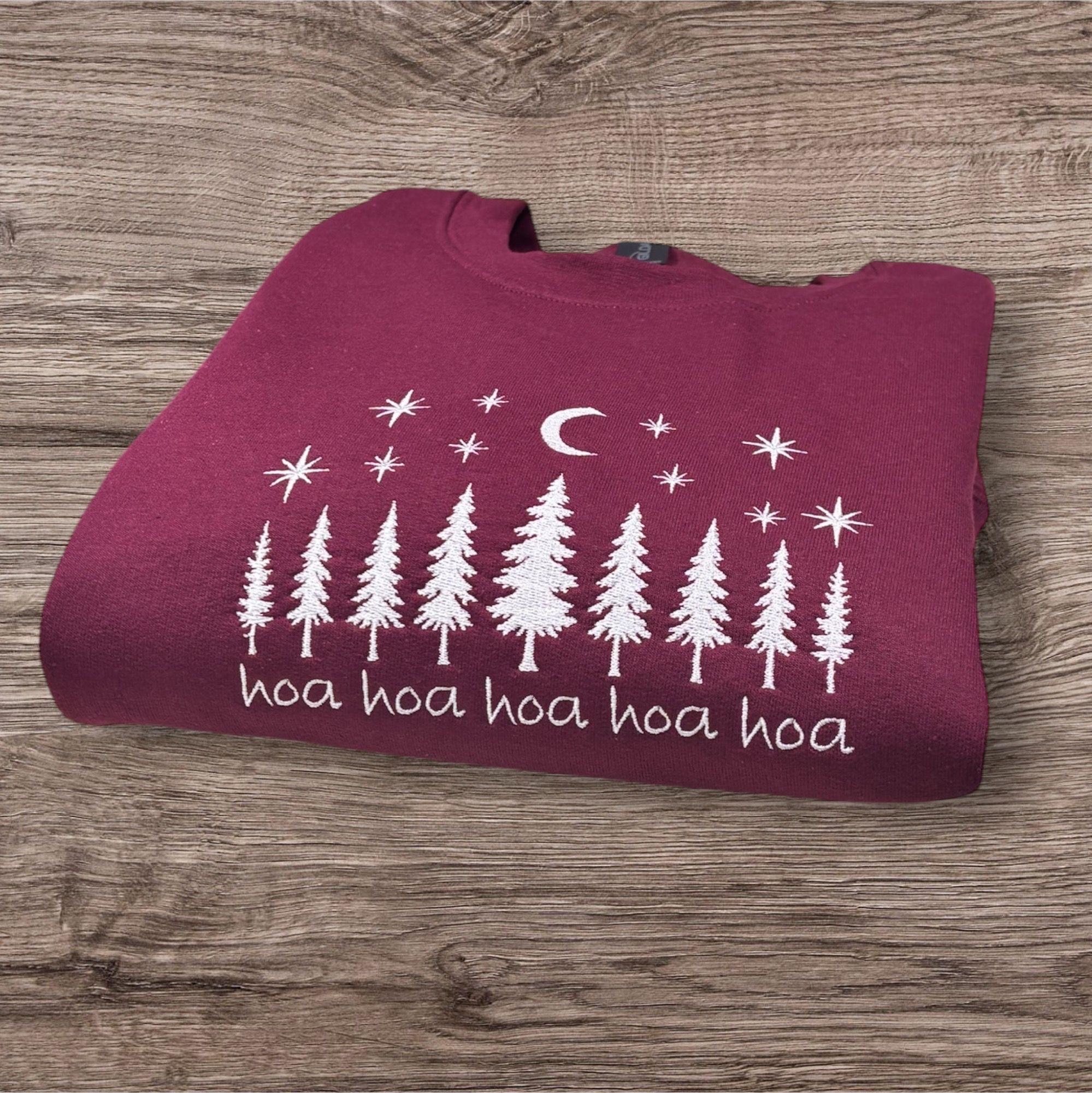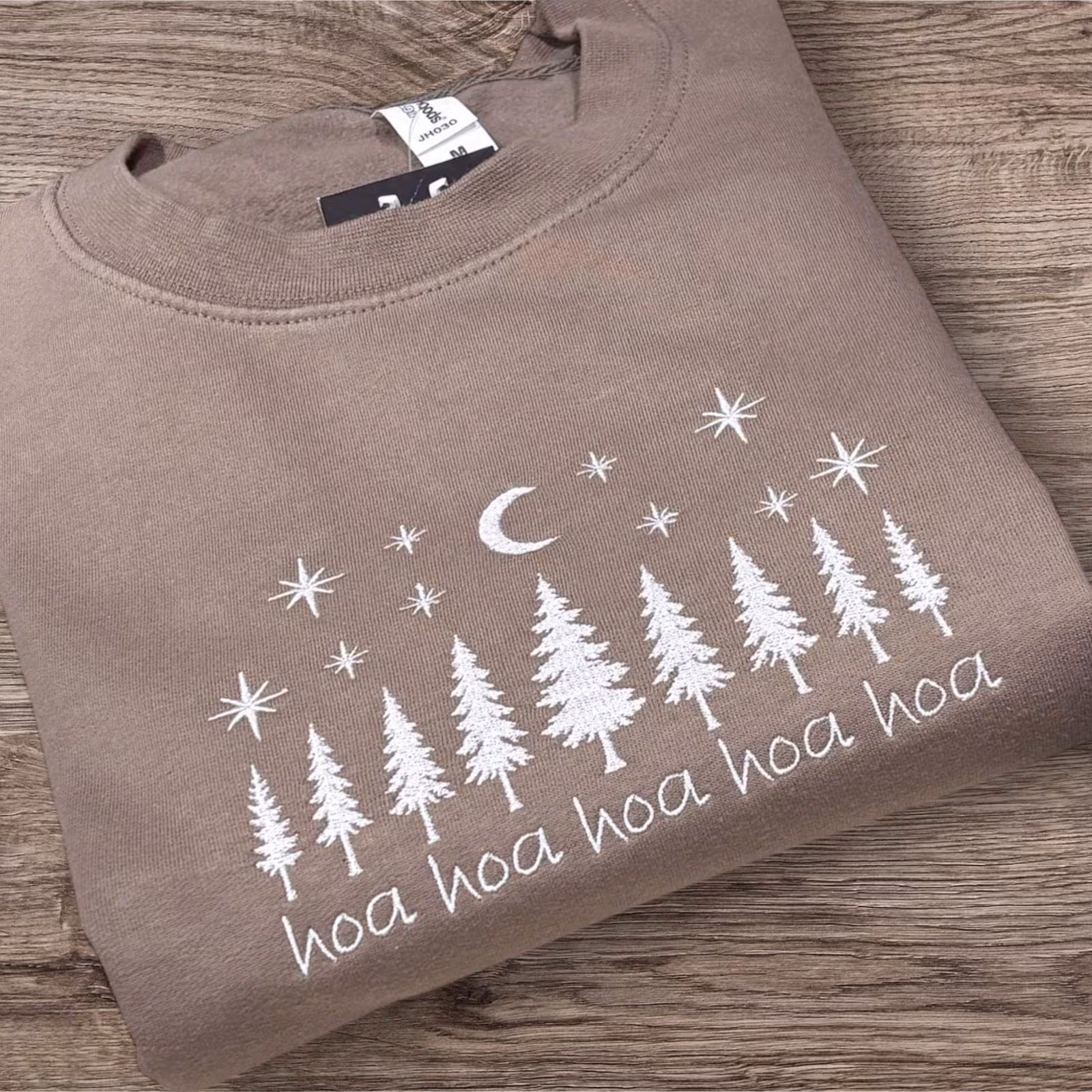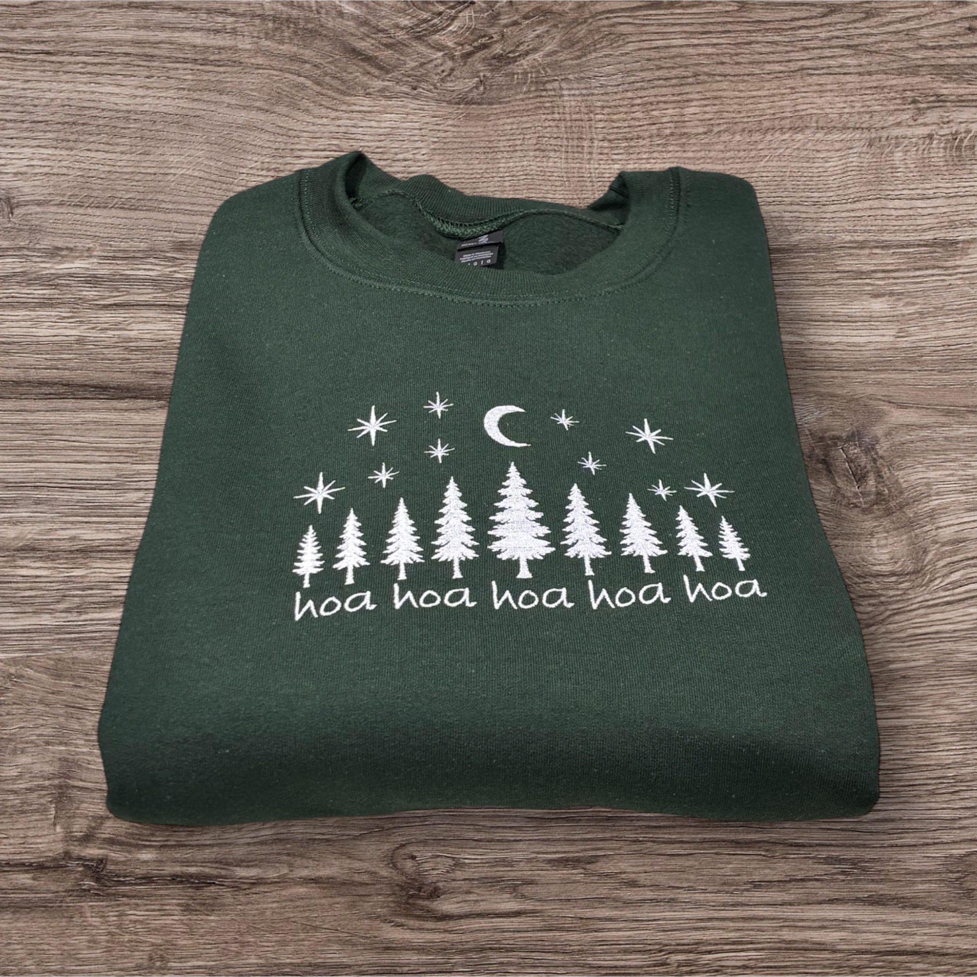 π Embroidered Hoa, Hoa, Hoa, Hoa, Hoa, pine tree with stars and moon Sweatshirt or Hoodie.