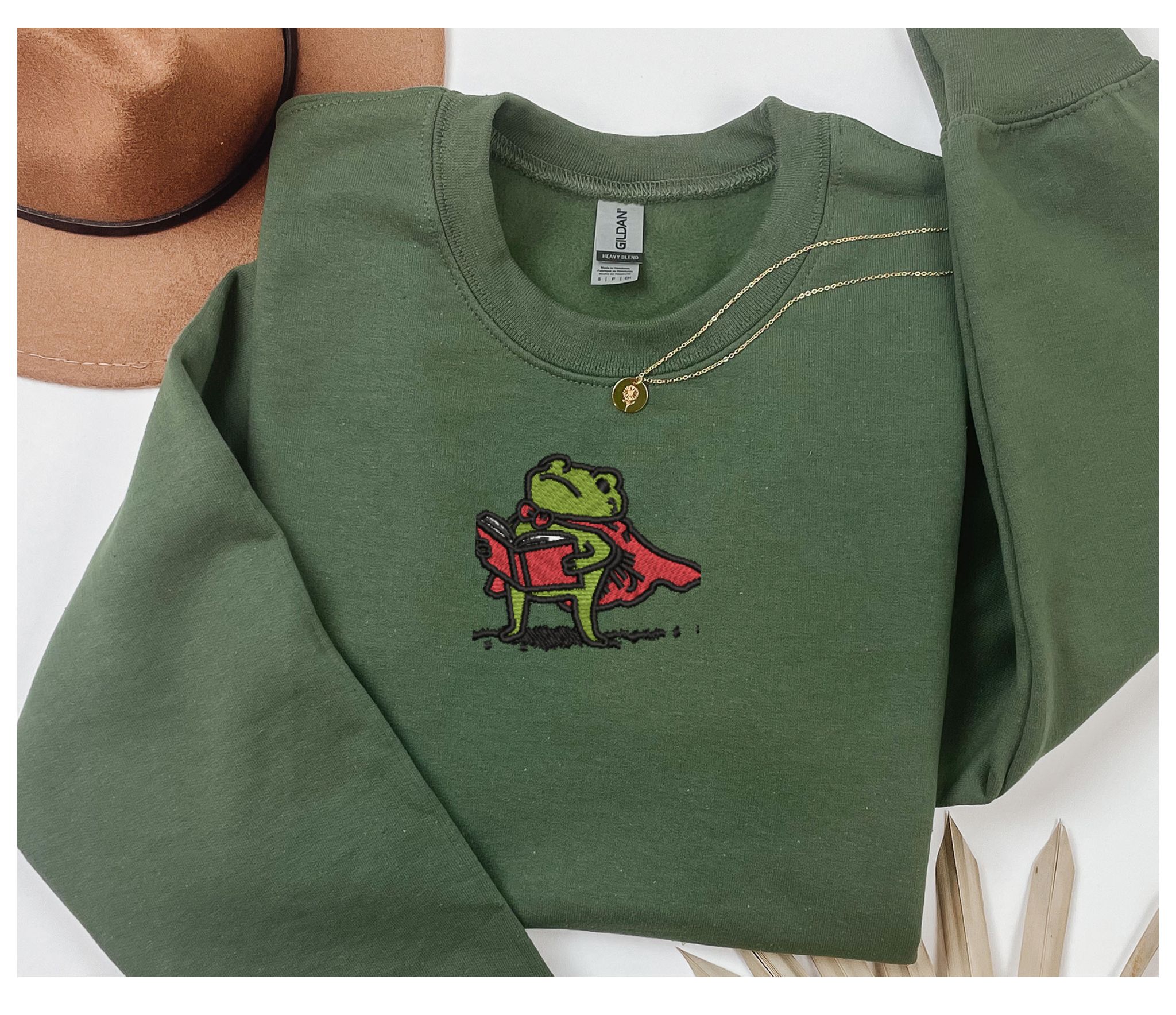 Embroidered reading frog sweatshirt