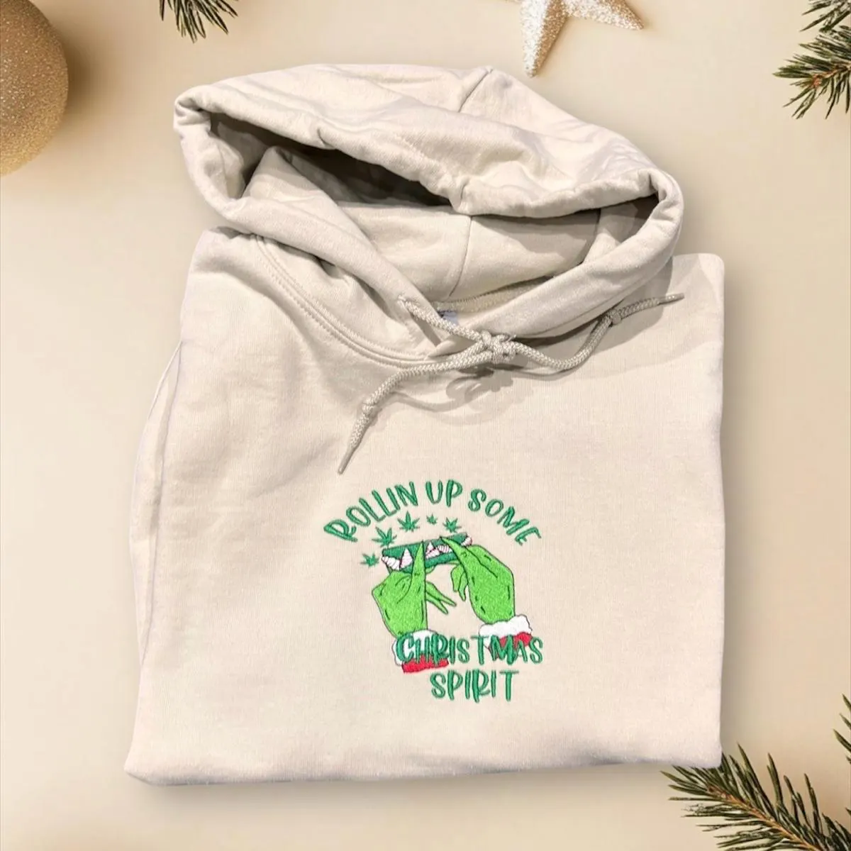 Embroidered rolling up some Xmas spirit, sweatshirt, hoodie. Funny Christmas jumper, smoking, festive sweater, xmas gift