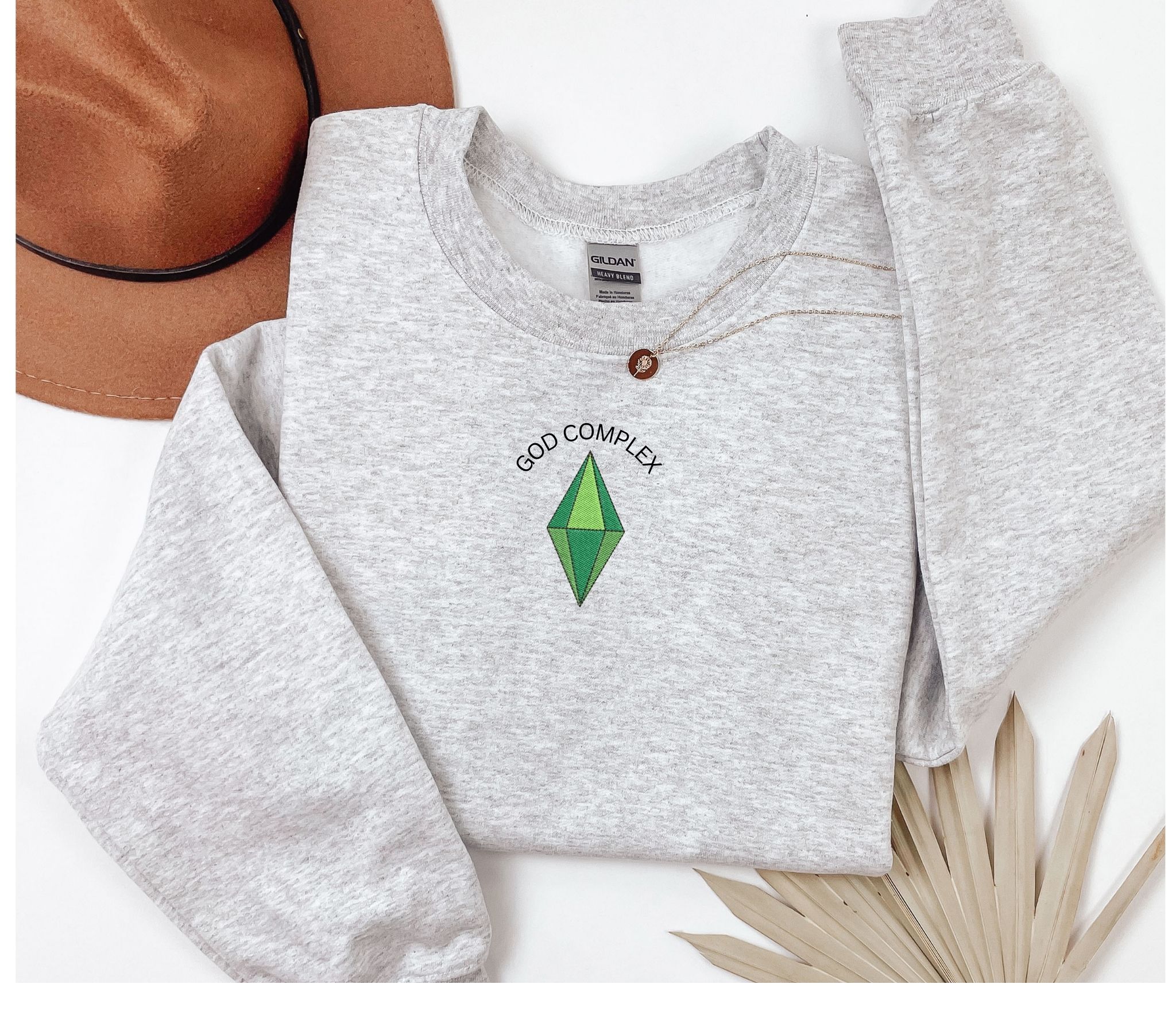 Embroidered Sims Plumbob God complex sweatshirt or hoodie.