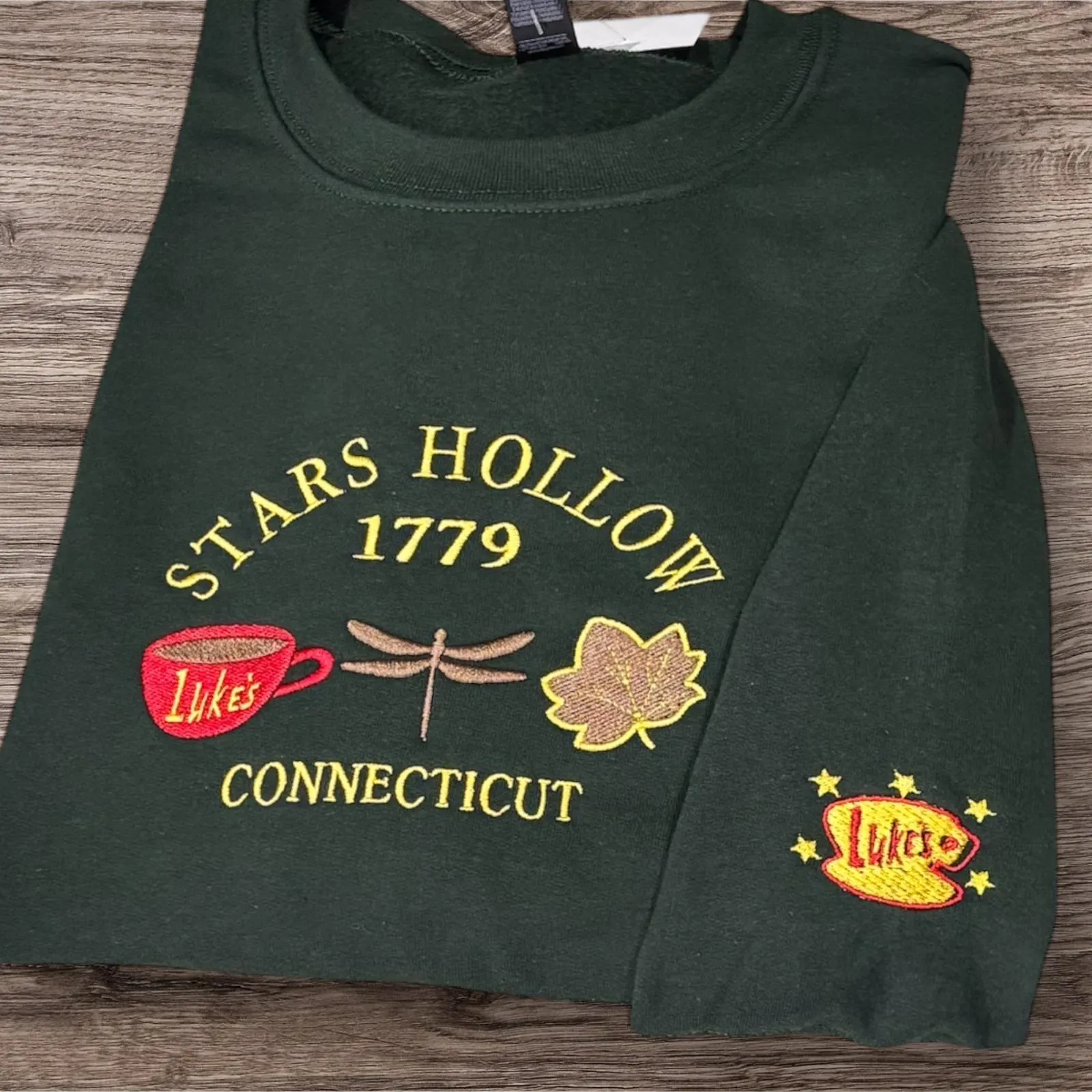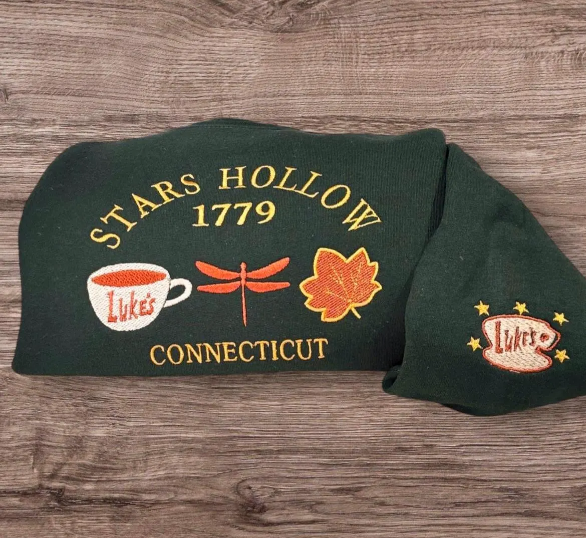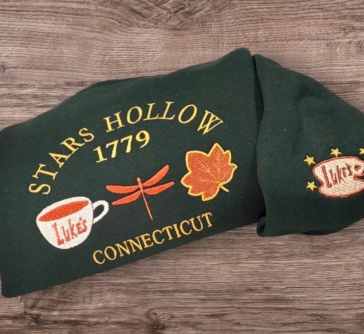 Embroidered stars hollow, Gilmore girls tv drama sweatshirt, hoodie, gift for women, ladies fashion.Autumn Crew neck jumper.