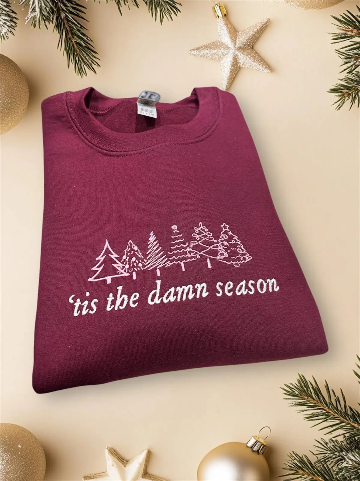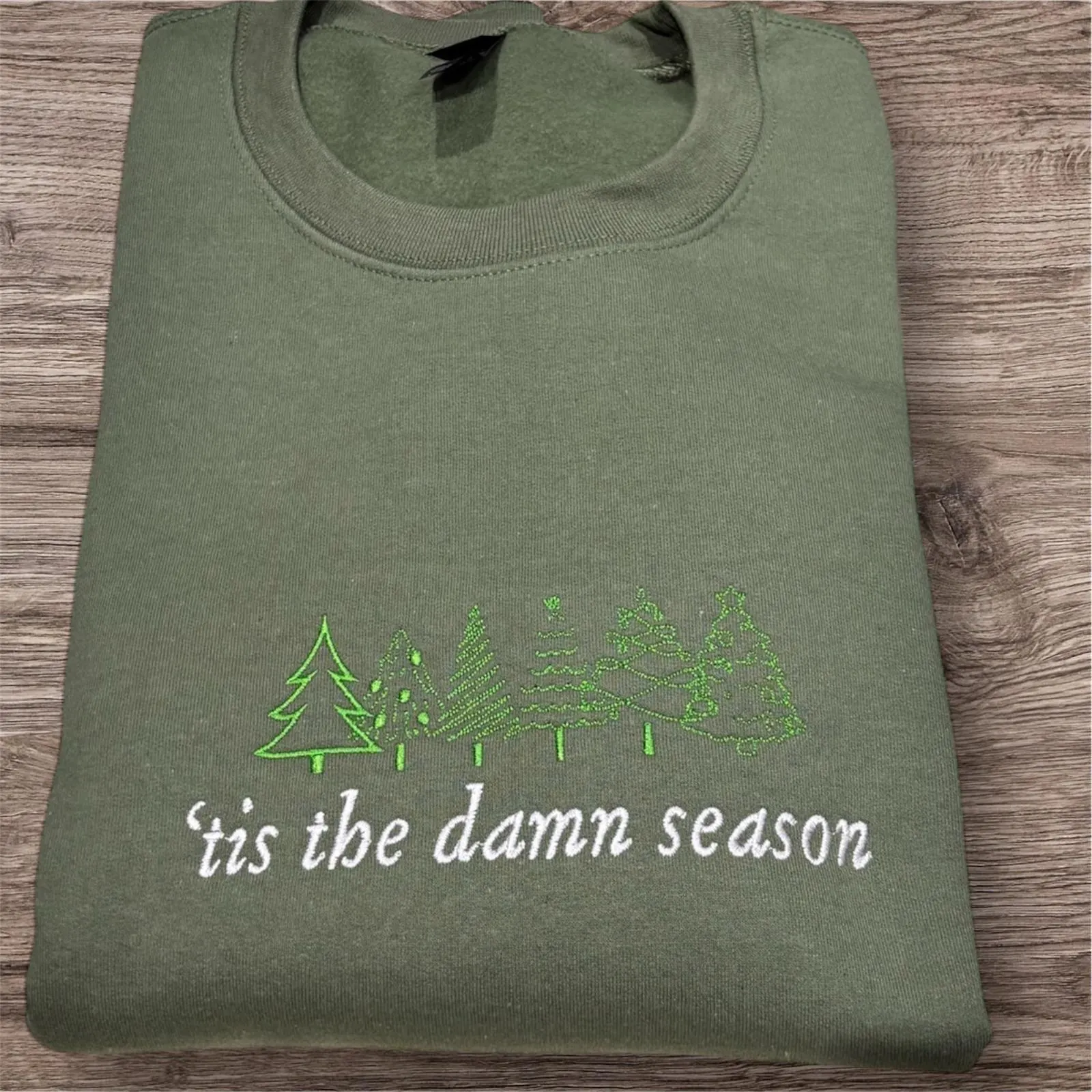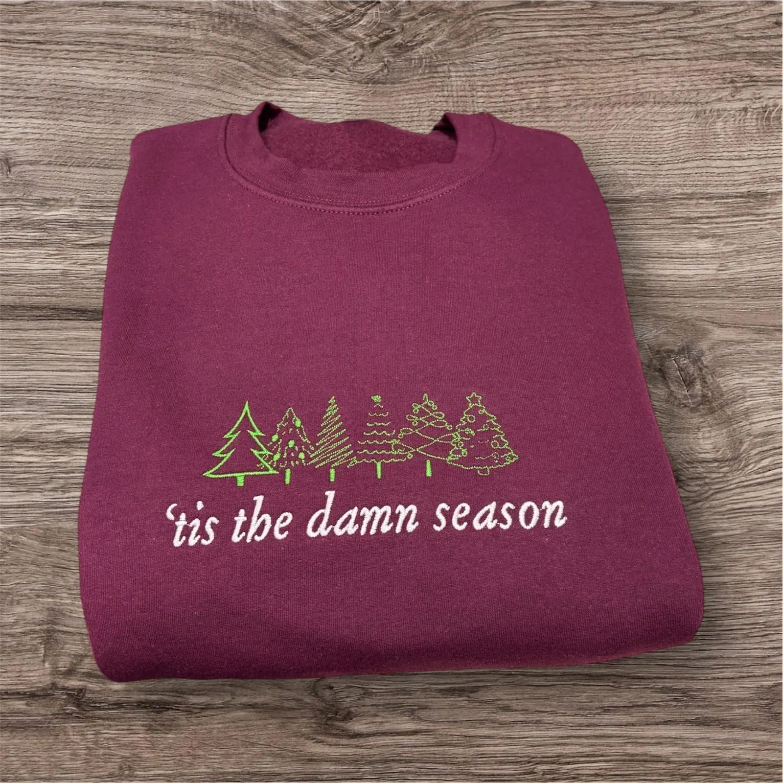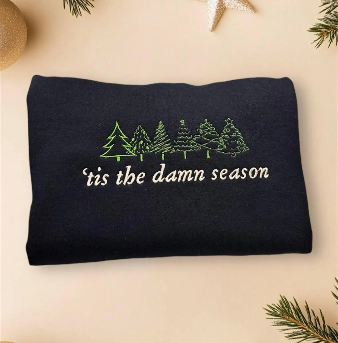 Embroidered tis the damn season , sweatshirt, hoodie. Cute Christmas jumper, Christmas tree, festive sweater, xmas gift, unisex crew neck.