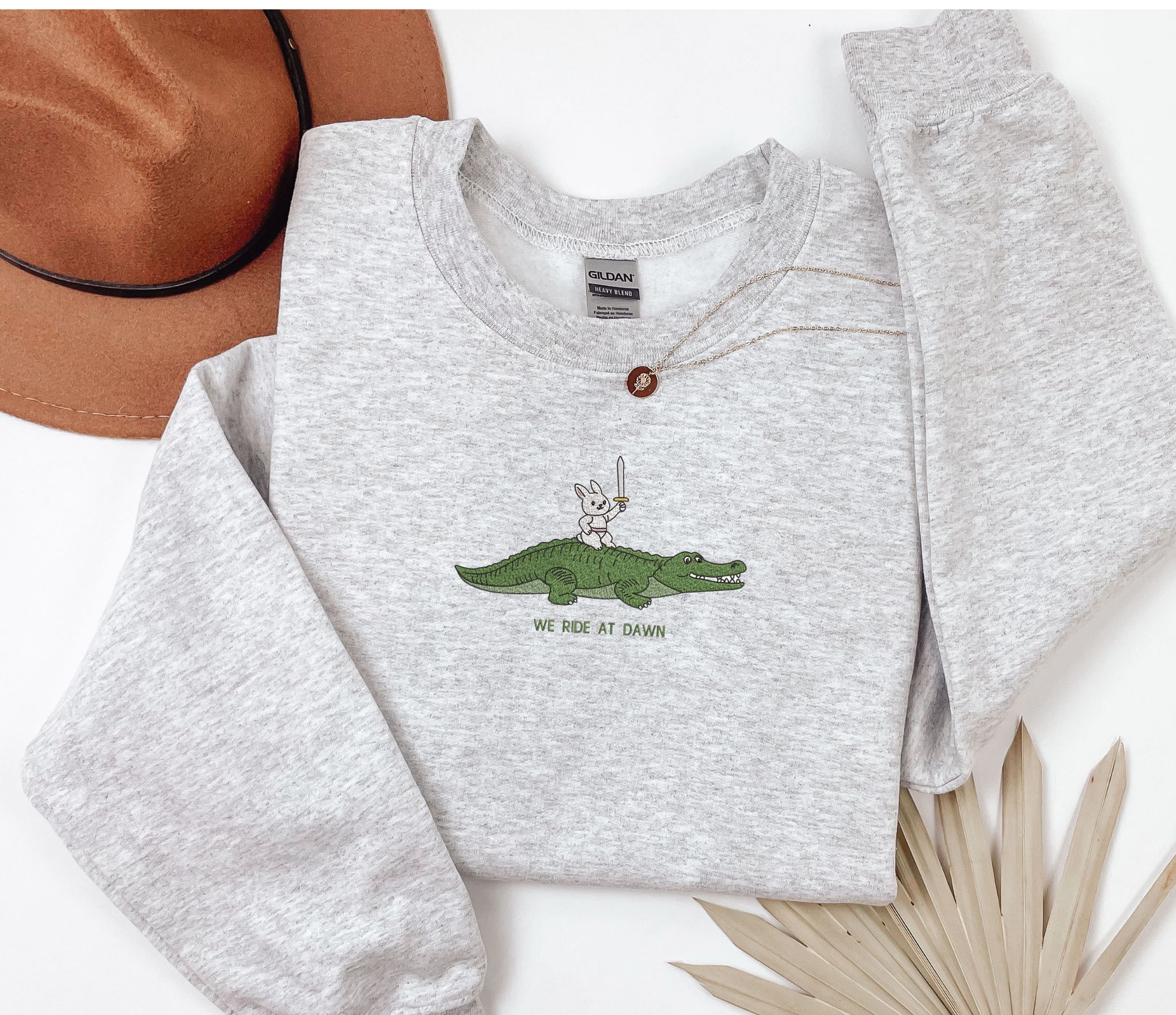 Embroidered we ride at dawn rabbit riding Crocodile sweatshirt