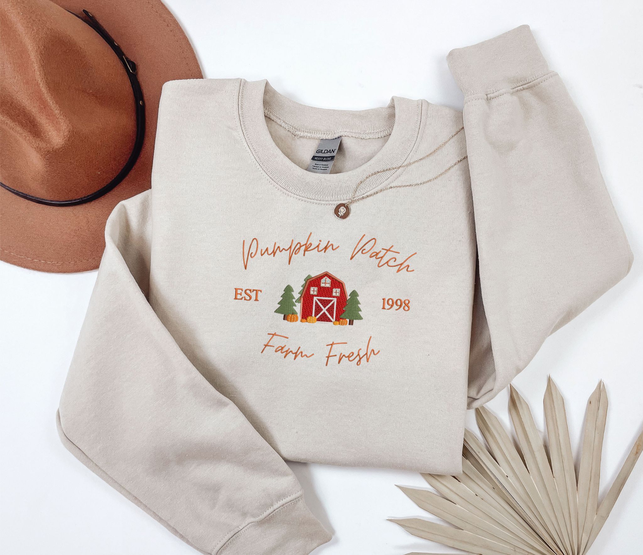 Pumpkin Patch Farm Fresh Embroidered Sweatshirt Or Hoodie.